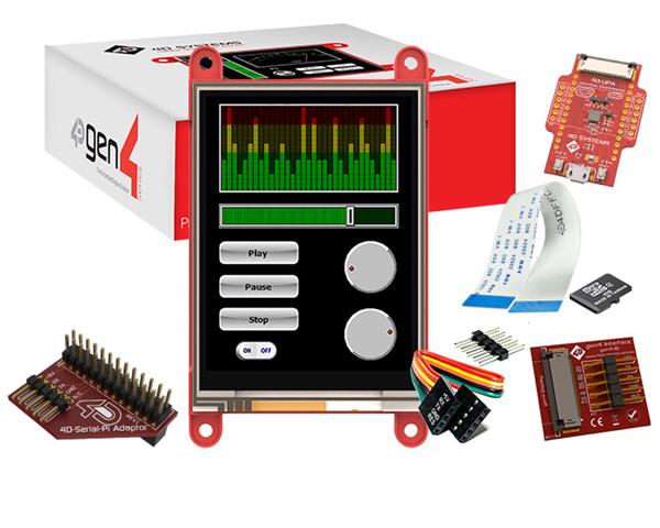 4D Systems SK-gen4-32PT-PI Starter Kits Starter Kit for gen4-uLCD-32PT-PI with 4D Serial Pi Adaptor, 4D-UPA , 4GB Industrial microSD Card, 150 mm FFC Cable, 5-way female-to-female ribbon cable with male-to-male adaptor
