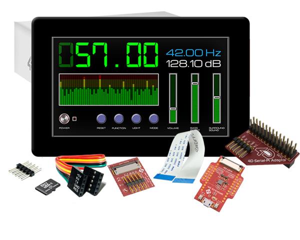 4D Systems SK-gen4-70DCT-CLB-PI Starter Kits Starter Kit for gen4-uLCD-70DCT-CLB-PI with 4D Serial Pi Adaptor, 4D-UPA , 4GB Industrial microSD Card, 150 mm FFC Cable, 5-way female-to-female ribbon cable with male-to-male adaptor