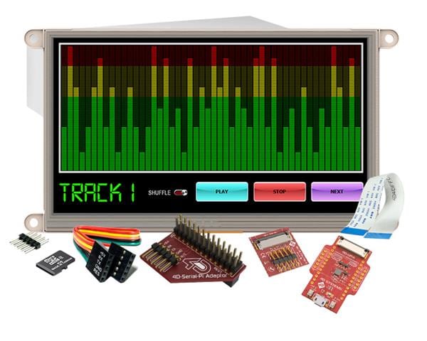 4D Systems SK-gen4-70DT-PI Starter Kits Starter Kit for gen4-uLCD-70DT-PI with 4D Serial Pi Adaptor, 4D-UPA , 4GB Industrial microSD Card, 150 mm FFC Cable, 5-way female-to-female ribbon cable with male-to-male adaptor