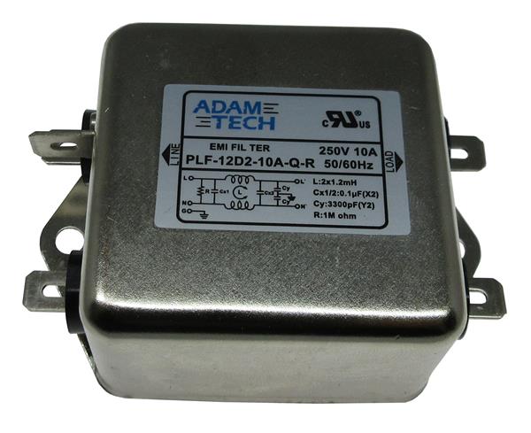 Adam Tech PLF-12D2-10A-Q-R Power Line Filters EMI/RF Line Filter, 115/250VAC 10A, medium outline, chassis mount | EMIN.COM.MM