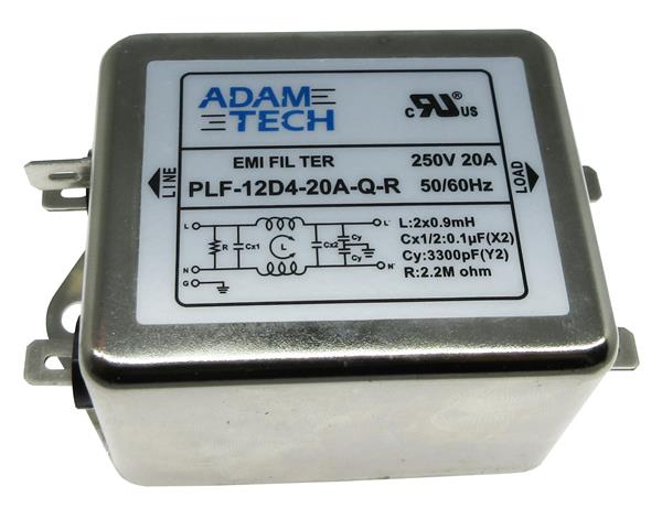 Adam Tech PLF-12D4-20A-Q-R Power Line Filters EMI/RF Line Filter, 115/250VAC 20A, medium outline, chassis mount | EMIN.COM.MM