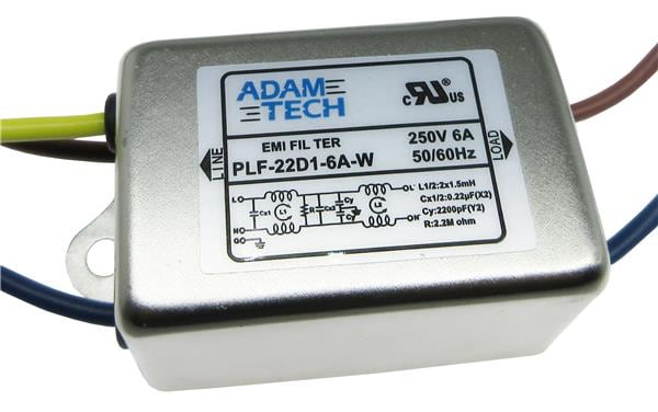 Adam Tech PLF-22D1-6A-W Power Line Filters EMI/RF Line Filter, 115/250VAC 6A, wire leads w/ chassis mount | EMIN.COM.MM