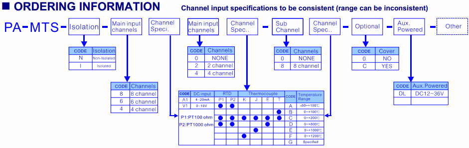 Adtek PA-MTS-N-8P1A0-8P1A-C-DL Analogue to RS485 Converter (0~10V/(0)1~5V, 0(4)~20mA, PT100Ω, T/C)