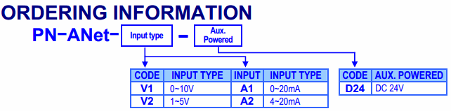 Adtek PN-ANET AI TO ETHERNET Converter (±150mV, ±500mV, 0~5V, ±10V/ or 0~20mA, 4~20mA)