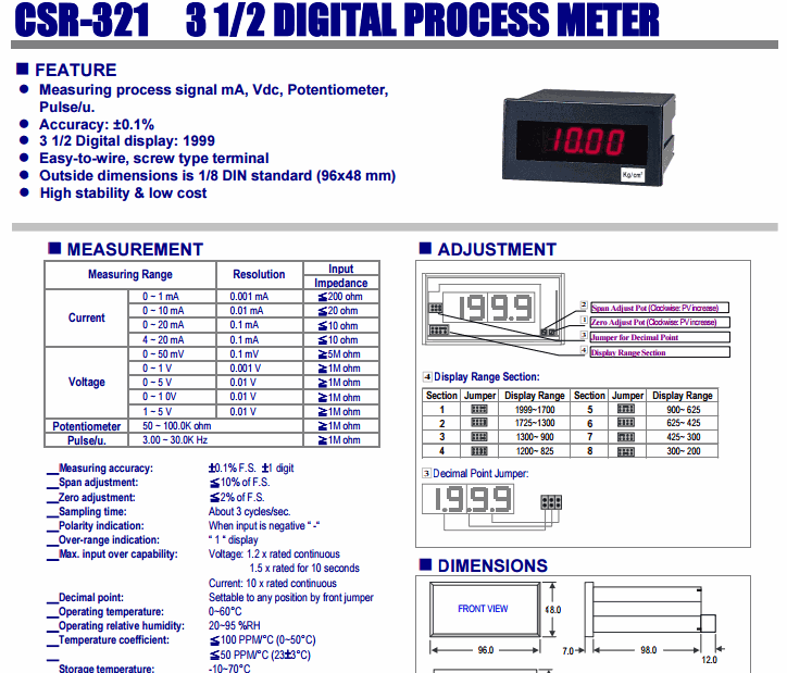 Adtek CSR-321 3 1/2 DIGITAL PROCESS METER (mA, V)