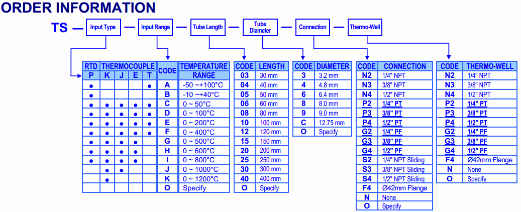 Adtek TS 2 WIRE TEMP. Transmitter WITH SENSOR (2 wire, Type sensor K,j,E,T and Pt100) (2 dây, Cảm biến loại K, J, E, T và Pt100) | EMIN.COM.MM