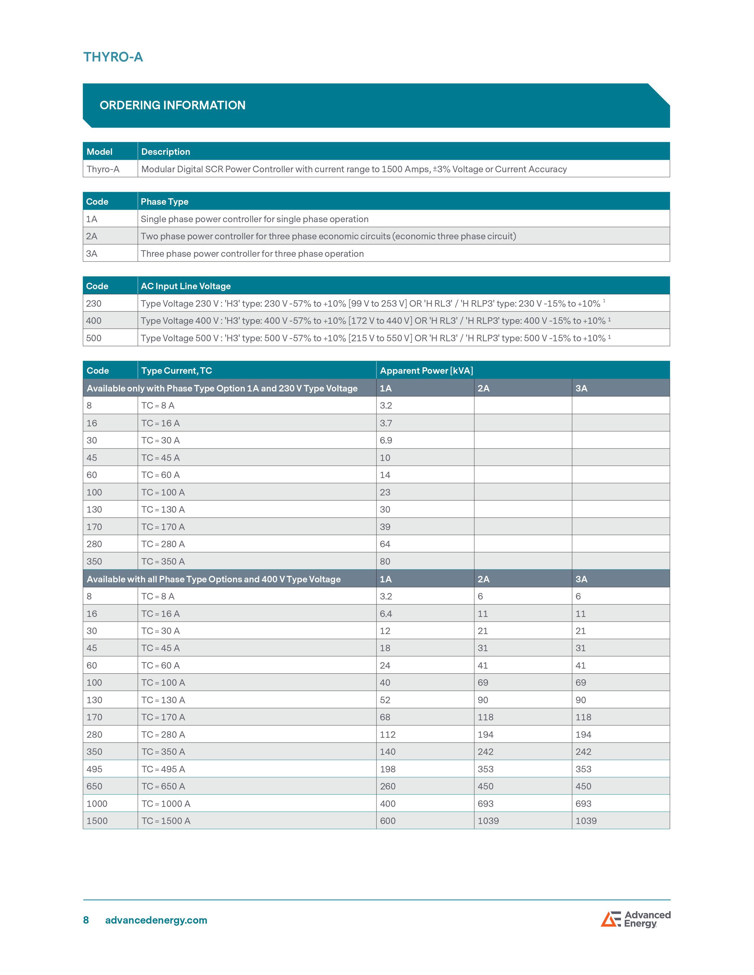 Advanced Energy Thyro-A Thyro Power Controller (8 ~ 1500A)