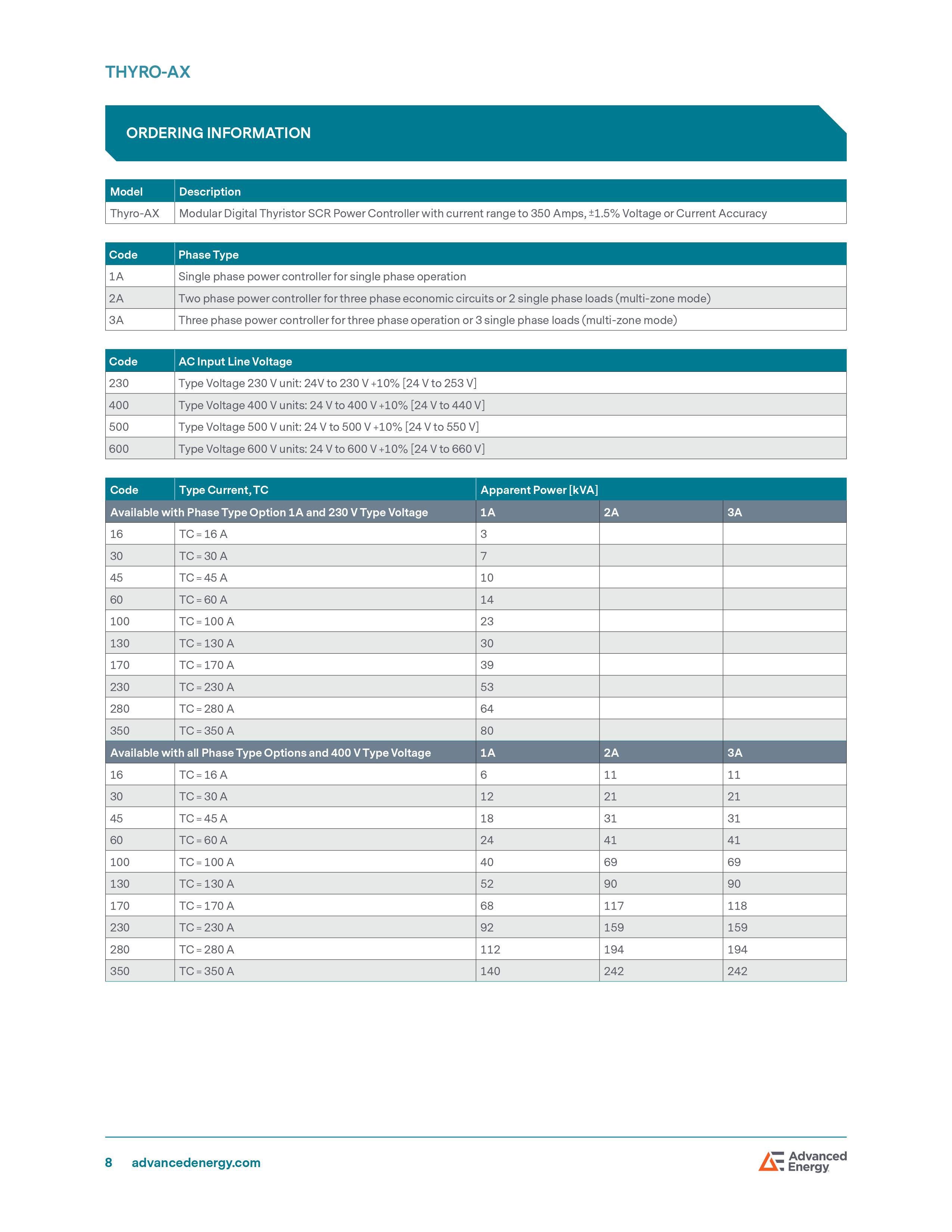Advanced Energy Thyro-AX Thyro Power Controller (16 ~ 350A)