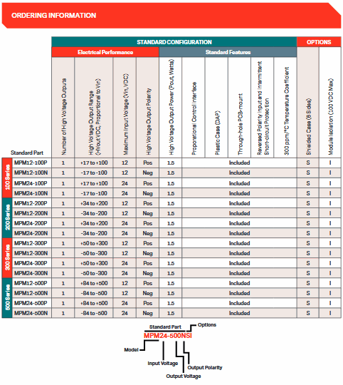 negative polarity models = -HVout: -50 ~ -300VDC