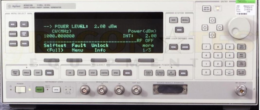 Note: Agilent label, 10MHz to 20GHz, max 17dBm high power output, opt 001(Add step attenuator)/ 008(1Hz Frequency Resolution)