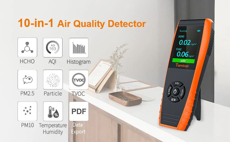 The suggestion for you is Temtop LKC-1000S+ 2nd, a product currently distributed by EMIN. With just over 4 million devices, this device can simultaneously measure many important indicators such as PM2.5, PM10 fine dust, CO₂, TVOC levels and temperature-humidity. When the air is fresh and clean, employees will feel more comfortable, their working spirit will also be more refreshed and focused.