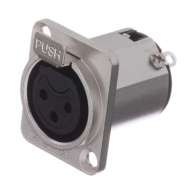 Amphenol Audio AC3FDZ Connectors 3 Pole XLR Metal Female Chassis Mount D Type Stamped Contacts Nickel Finish | EMIN.COM.MM