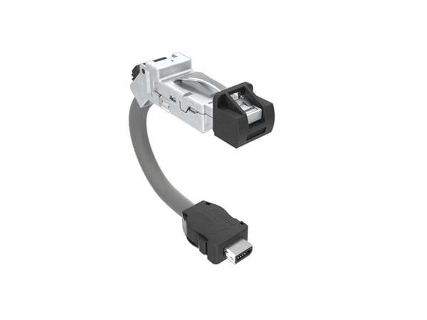 Amphenol Canada DRPC625002A20 Modular Connectors / Ethernet Connectors Cable, Cat6A, Industrial RJ45, 45 deg right exit to standard ix plug B key, 24AWG, 0.5m, 8u gold
