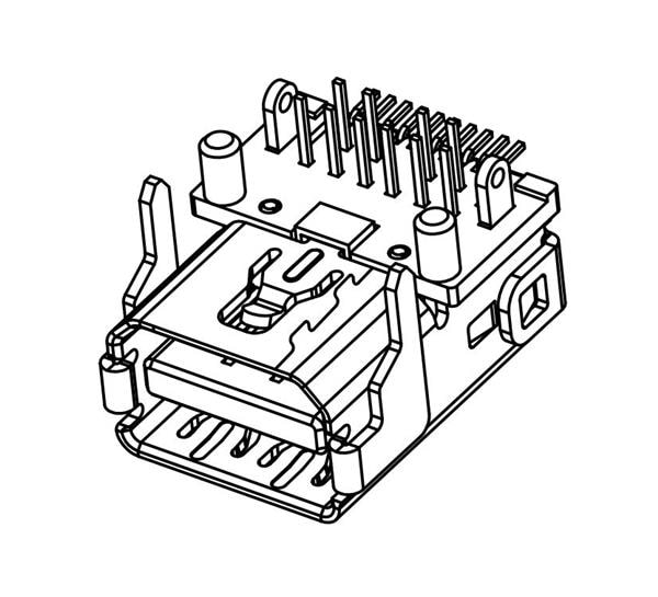 Amphenol Commercial Products G46M2013201ATWEU Mini-Displayport Mini DISPLAY PORT 20POS RECEPTACLE Right Angle, Center Hight3.2mm,Hybrid (Dip+SMT) type, LCP, Black, 15U" plating, Tape andReel packing