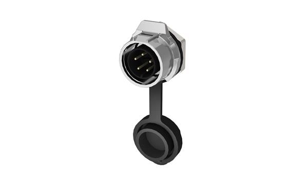 Amphenol Commercial Products MRDBG05L13000 Connectors MRD B Panel Mount Receptacle, 5 Position, Pins, Metal, Solder Cup, Dust Cover