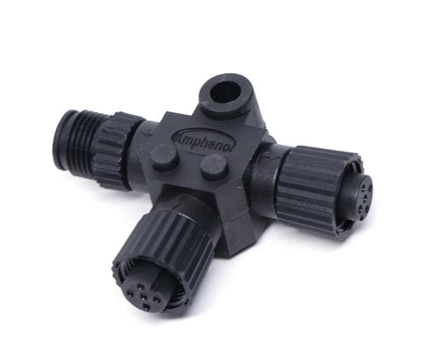 Amphenol LTW PS-050505-FMF-TS001 Circular Metric Connectors Circular Metric Connector, T Adaptor, Plastic, A Coding, 4A, 05 pins, (End 1) Female Female, (End 2) Male Male, (End 3) Female Female, Screw Thread, IP68 Mated