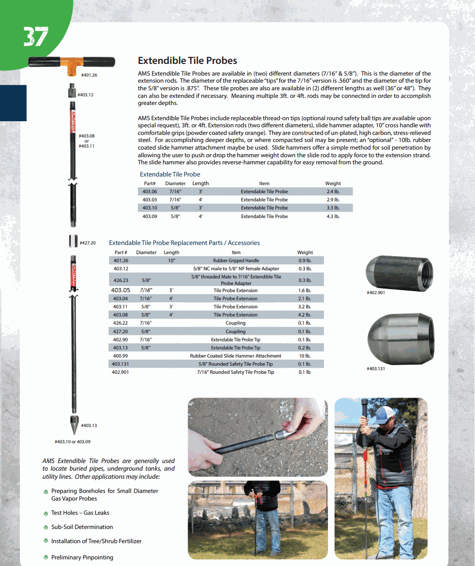 AMS 403.09 5/8" X 4' Extendible Tile Probe Complete
