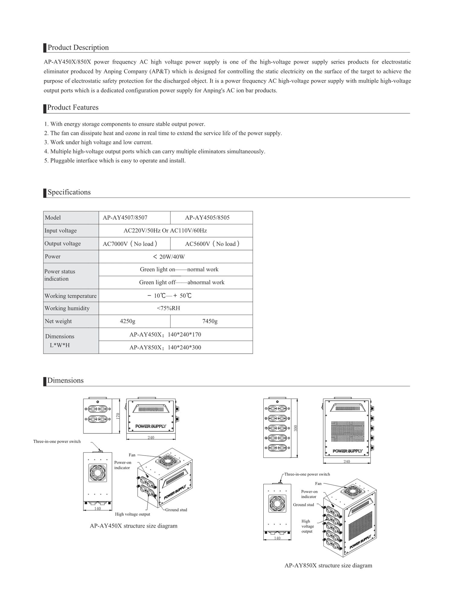 AP&T AP-AY4507 High voltage anti static electrostatic discharge eliminator power supply | EMIN.COM.MM