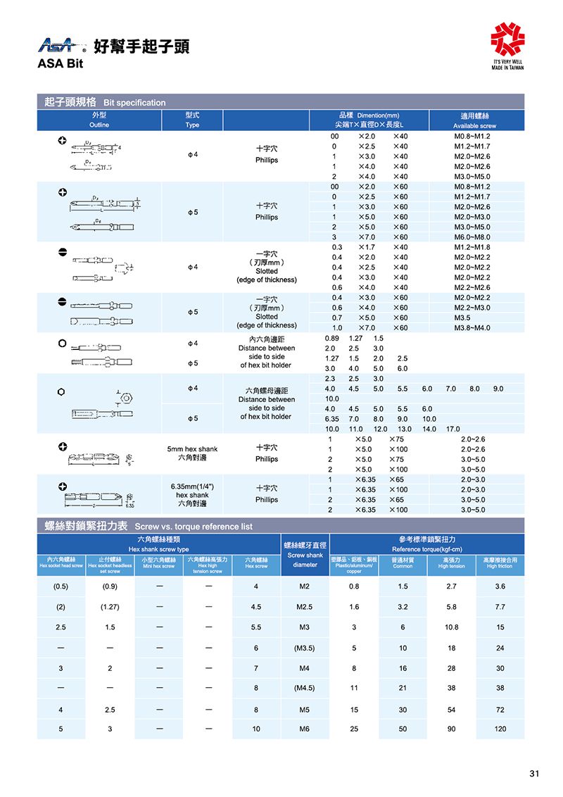 ASA For 1/4" Hex Shank Bit for 1/4" Hex Shank | EMIN.COM.MM