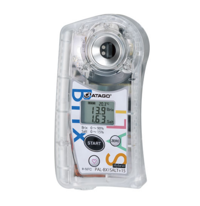 This is a hybrid of refractometer and salt meter which has an optical prism is used to measure the concentration (Brix) and titanium electrode is used to measure the salt contents.