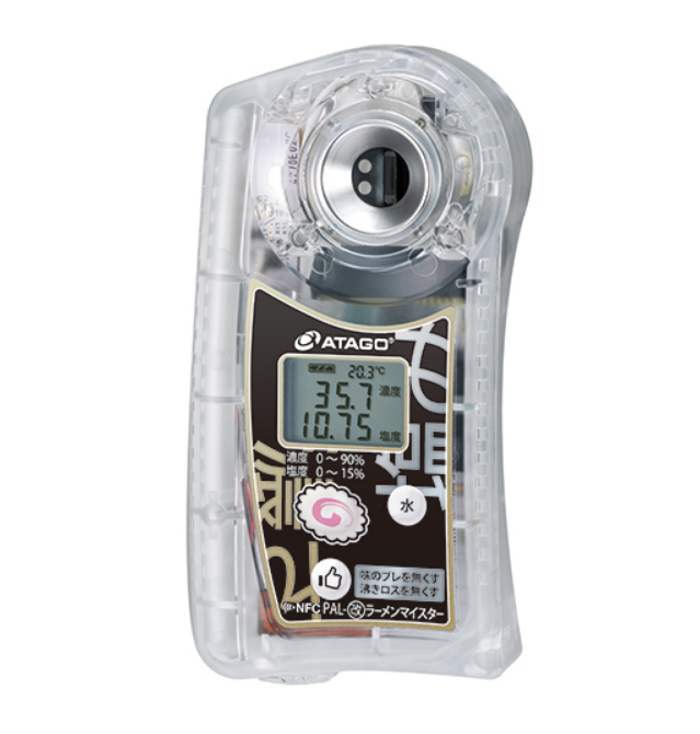 A must-have item for a ramen shop. The PAL-Ramen Meister is a hybrid model that can measure the concentration and salt content of ramen soup, dashi, kaeshi and sauce all at once. After repeated experiments with ramen soup and sauce, we achieved to be able to obtain a stable value within 2 seconds even when it is hot. In addition, it is possible to measure the salt content of thick liquids such as sauce without dilution. By adding concentration management to the usual tasting, you can eliminate the fluctuation of the taste and prevent soup and utility cost being wasted.