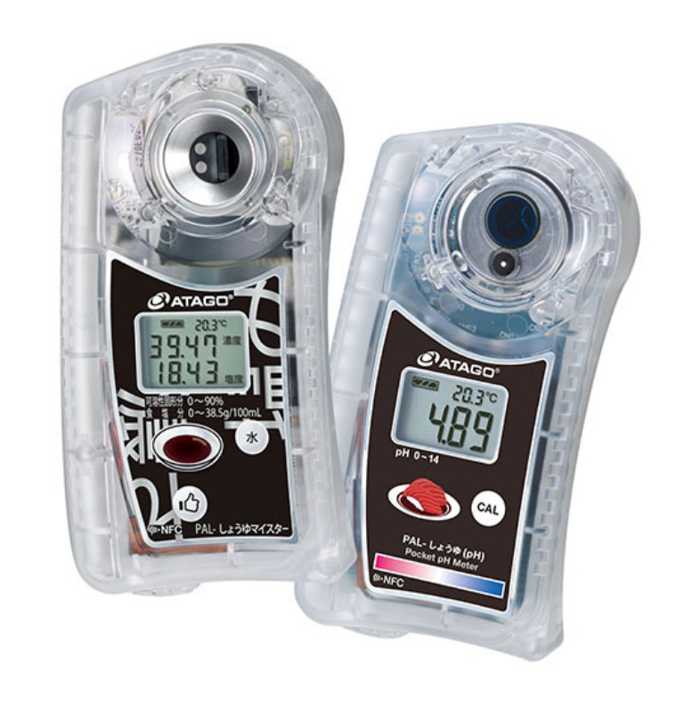 The PAL- SOYsauce Meister and pH meter set. In addition to measuring the concentration (brix%) and salt content of soy sauce, it can also measure pH value.
