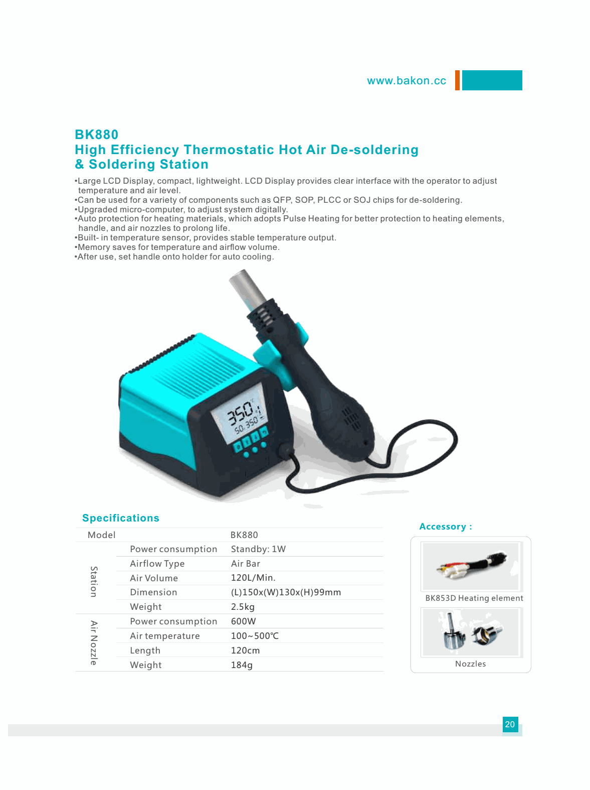 Bakon BK880 High Efficiency Thermostatic Hot Air De-soldering & Soldering Station (600W) | EMIN.COM.MM