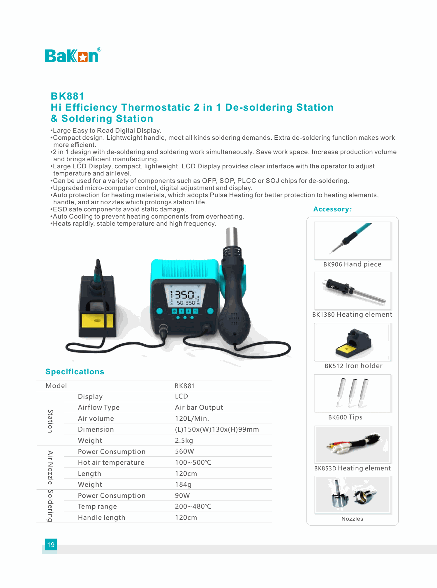 Bakon BK881 Hi Efficiency Thermostatic 2 in 1 De-soldering Station & Soldering Station (560W) | EMIN.COM.MM