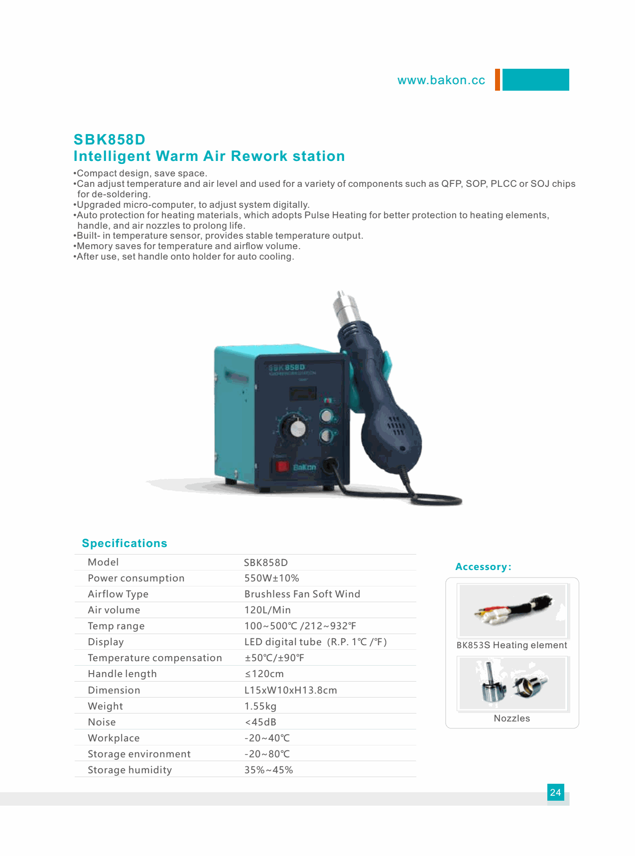 Bakon SBK858 Intelligent Warm Air Rework Station (100-500°C, 550W±10%) | EMIN.COM.MM