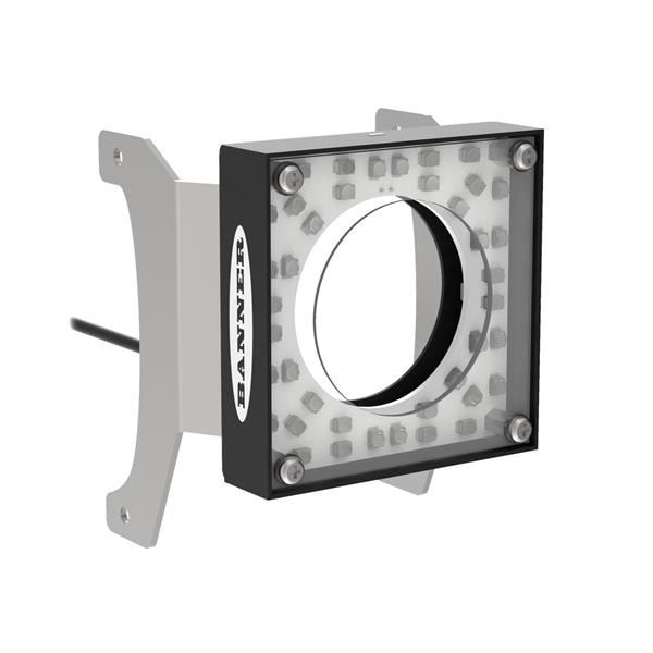 Banner Engineering LEDWRV62X62M Ring Lights VE Series 62 x 62 mm Ring Light; Visible White LED; 24 V dc; 0.3 m (1 ft) Cable with 3-pin male Connector; Connects to VE Smart Camera