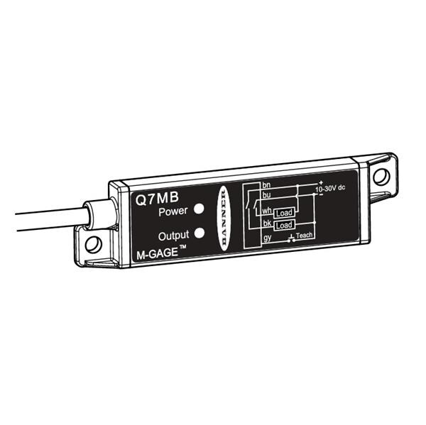 Banner Engineering Q7MB Magnetoresistive Transducer M-GAGE Q7M Flat-Pak Sensor; Range: Varies depending on application; Input: 10-30 V dc; Output: Bipolar NPN/PNP; Cable: Polyethylene jacket 2 m (6.5 ft)