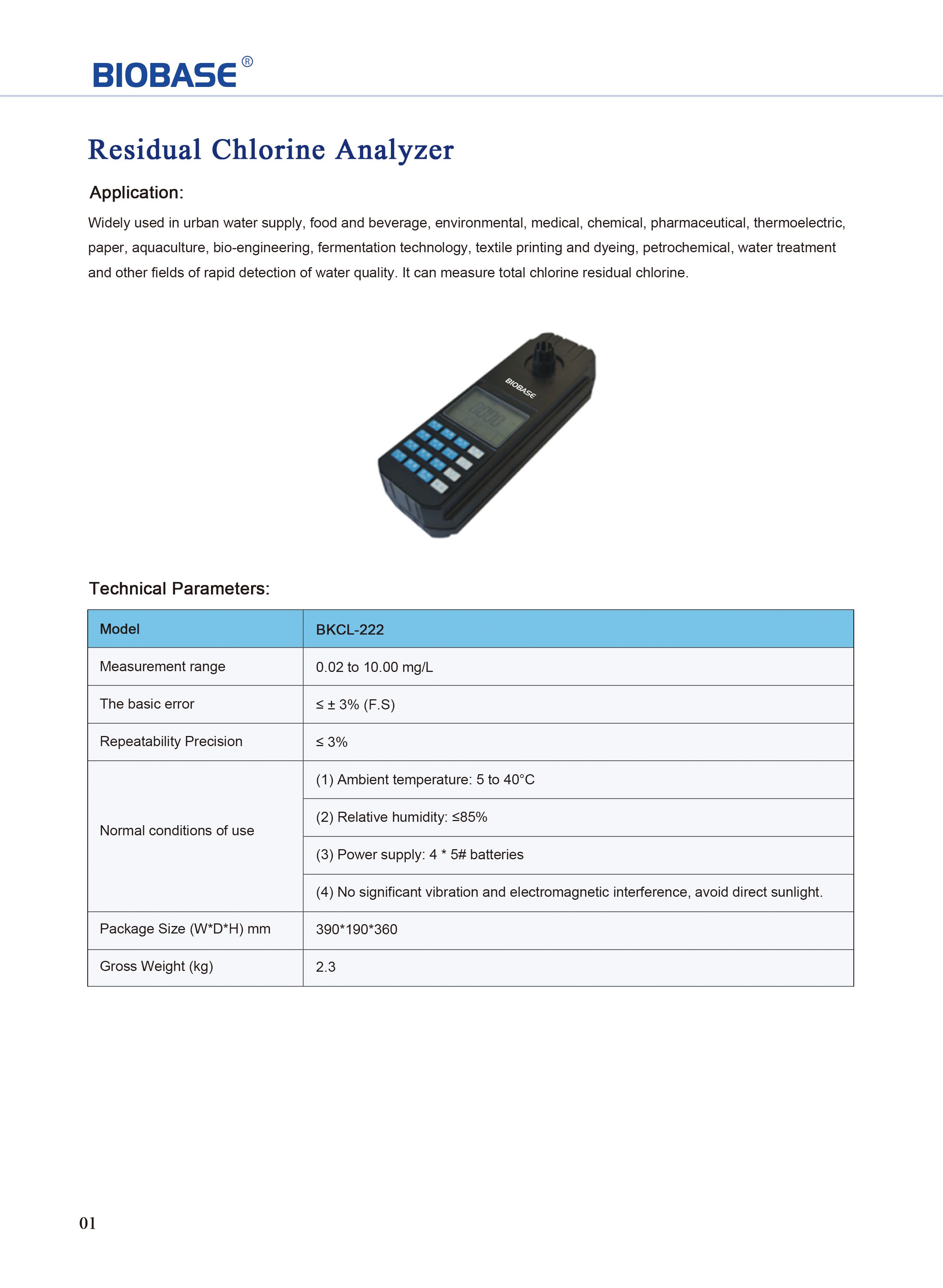BIOBASE BKCL-222 Residual Chlorine Analyzer