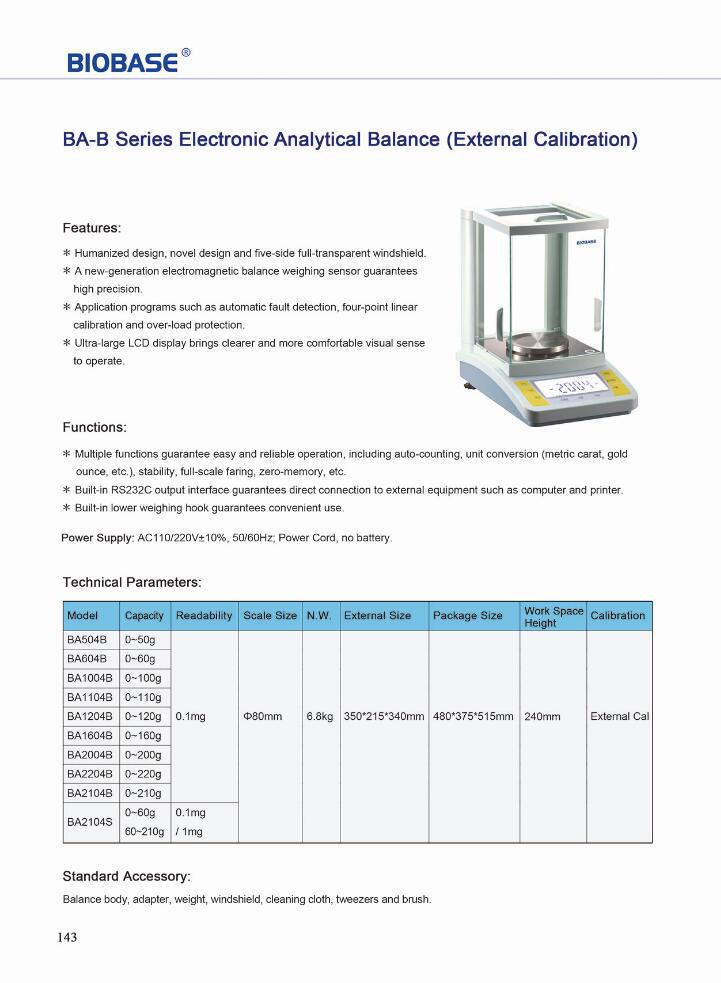 Standard Accessory: Balance body, adapter, weight, windshield, cleaning cloth, tweezers and brush.
