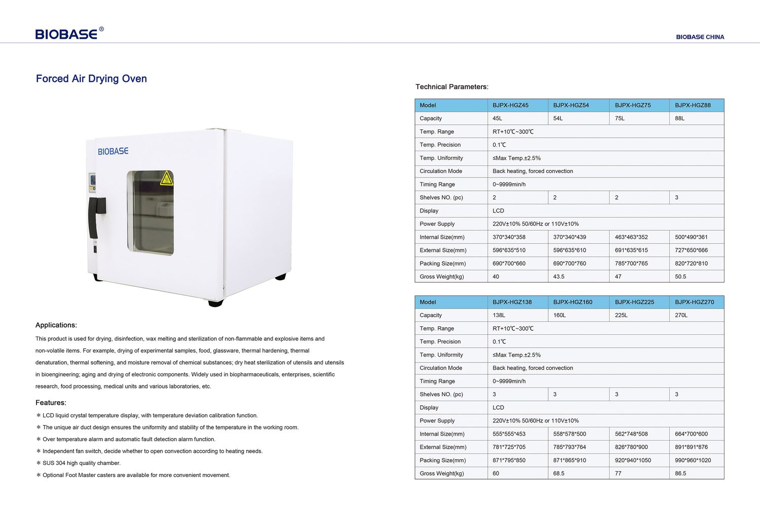 BIOBASE BJPX-HGZ270 Forced Air Drying Oven (RT+10~300℃, 270L, 220V) | EMIN.COM.MM