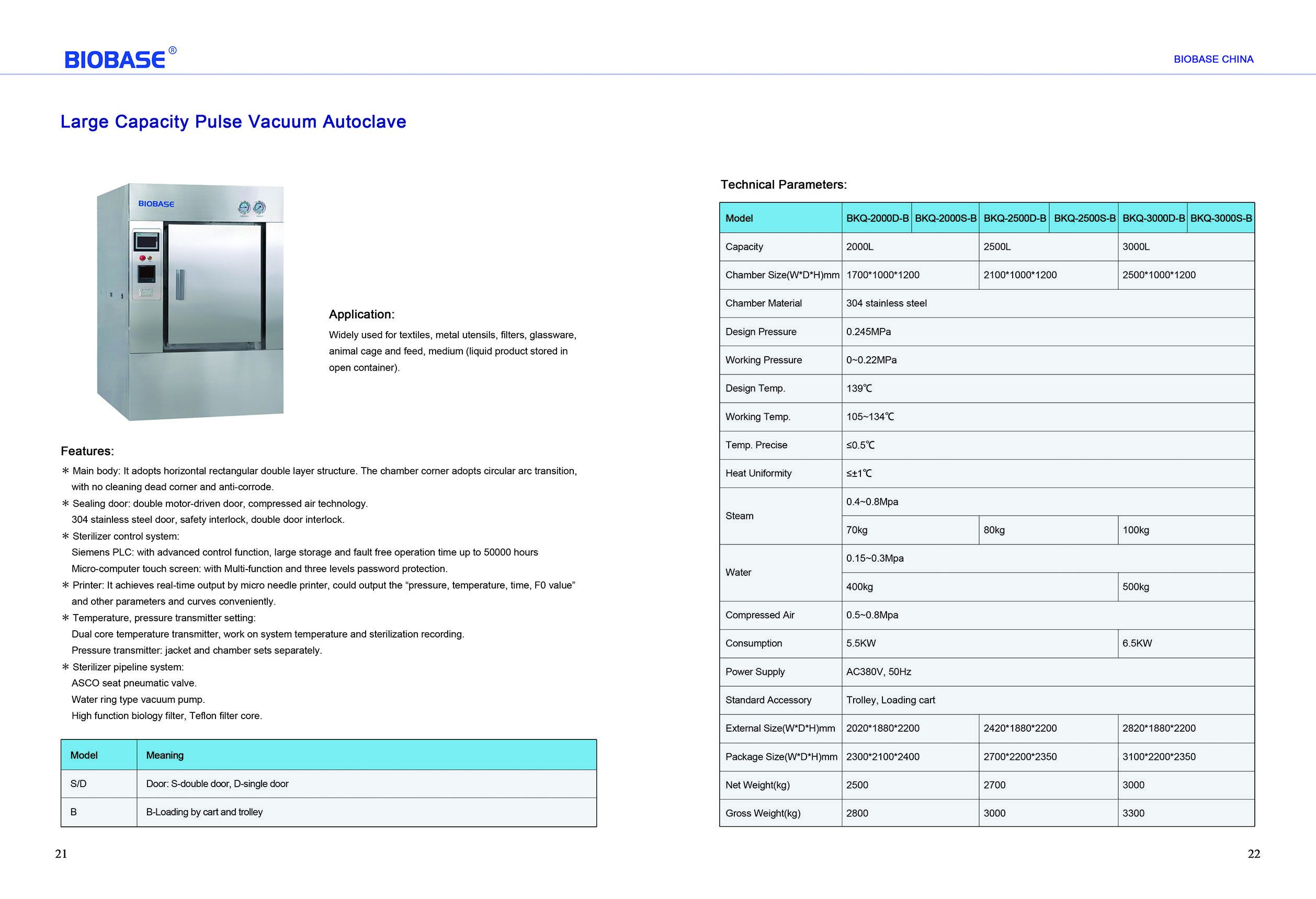 - Sterilizer control system: Siemens PLC; Micro-computer touch screen: with Multi-function and three levels password protection.
