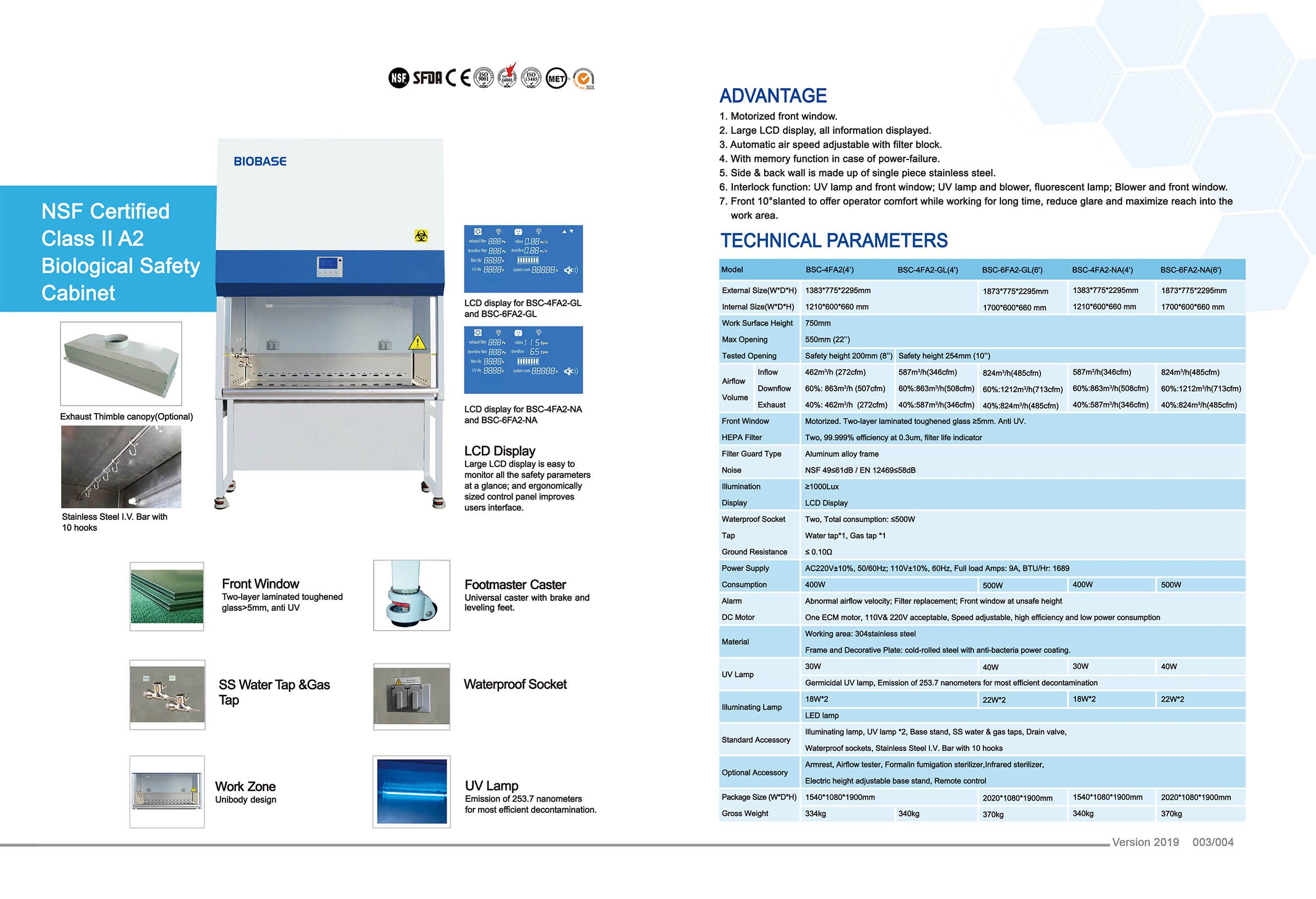 - Interlock function: UV lamp and front window; UV lamp and blower, fluorescent lamp; Blower and front window.