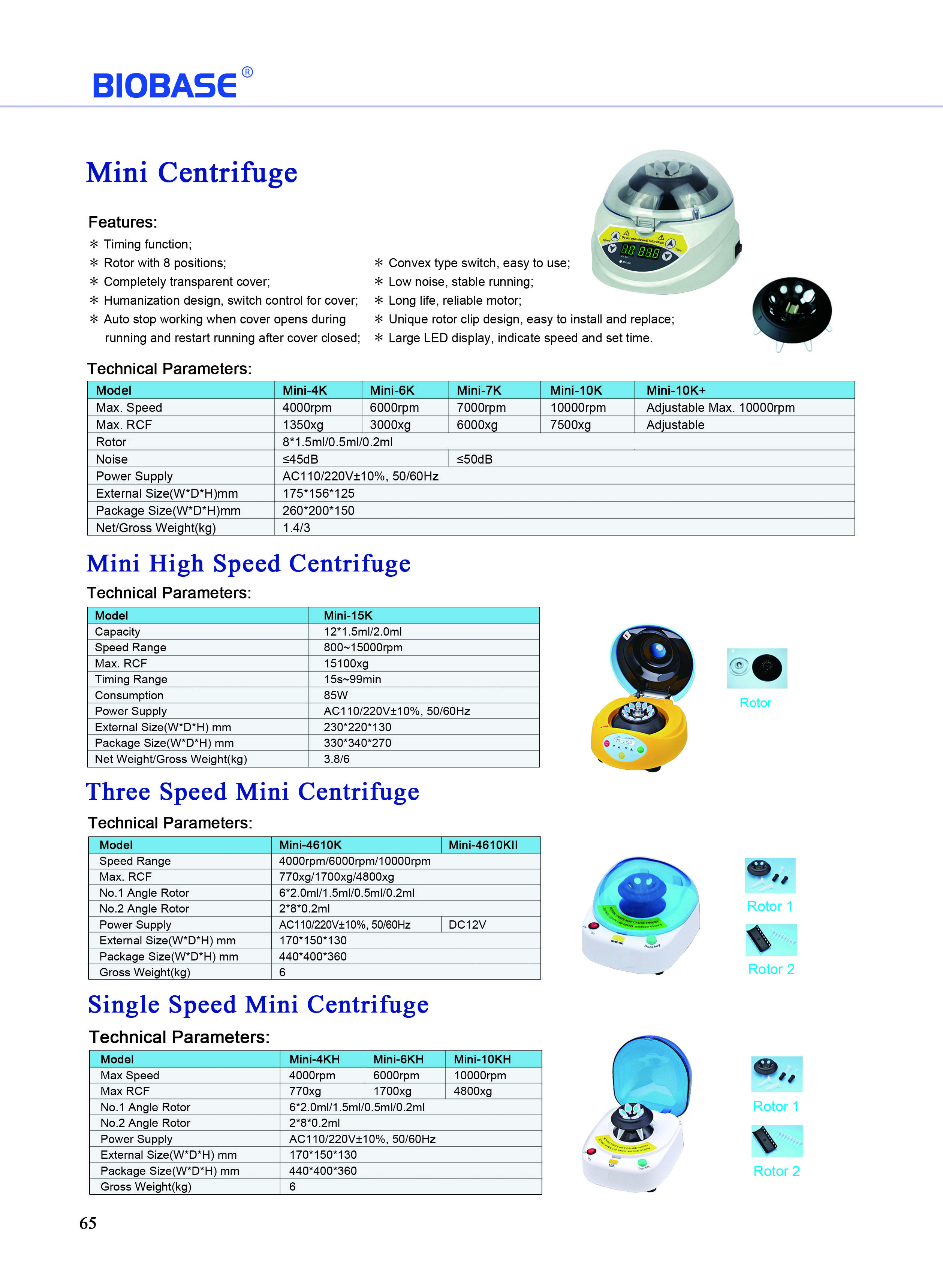 Rotor:8*1.5ml/0.5ml/0.2ml