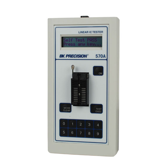 The Model 575A is able to locate intermittent and temperature related faults by using its unconditional or conditional loop testing modes. Unknown device identification is easily accomplished by selecting SEARCH from the menu, selecting the number of pins on the device and activating Search Mode. The 575A will search its library and identify the device, displaying possible functional equivalents for replacement. As part of the IC test, the specific IC number, the functional description of the device, and the status of faulty pins are scrolled through on the built-in display.
