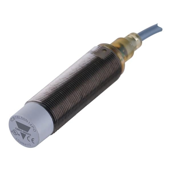 Carlo Gavazzi ICB18L50N14NO Proximity Sensors Inductive proximity sensor, M18 Nickel-Plated Brass, 2m cable, Sn 14mm, Non-flush mount, Long body, NPN NO output, Supply voltage 10-36Vdc, Max output current 200 mA, Max switching frequency 1,5 kHz, Operating temperature -25C - +70C, IP67