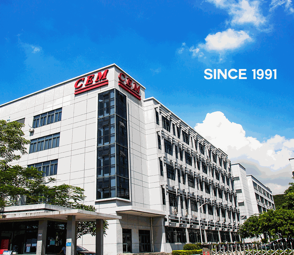 SHENZHEN EVERBEST MACHINERY INDUSTRY CO.,LTD (Brand : CEM), established in 1991, is a high-tech enterprise specialized in R&D, production and marketing of various professional measuring instruments. CEM is located in Shenzhen, China, with more than 1,000 employees, Over 100 engineers,13 production plants, 32 production lines, advanced production equipment.