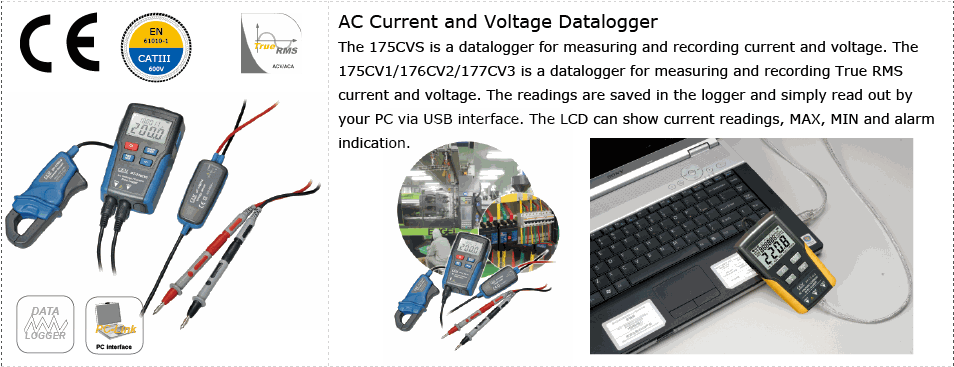 CEM DT-175CVS AC Current and Voltage Datalogger (2-200A; 6-600V, 2 CH, 100.000 rdgs)