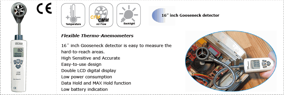 CEM DT-318B Thermo-Anemometer (1~30m/s, -10~60ºC, CFM: 0-999900)