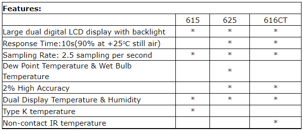 CEM DT-615 Humidity & Temperature Meters (0-100%RH, -20℃-1000℃ Type K)