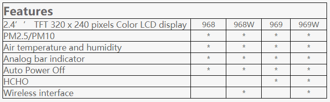 Mass Concentration: PM2.5:0~2000ug/m³ ;PM10:0~2000ug/m³