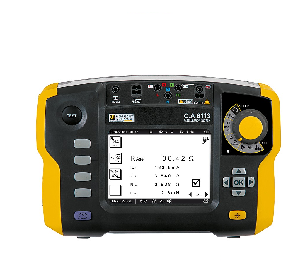 The C.A 6113 is an ALL-IN-ONE instrument for testing electrical installations in compliance with the national and international standards (IEC 60364-6, NF C 15-100, VDE 100, FD C 16-600, etc). It combines design, ergonomics, simplicity, performance, rapidity and accuracy.