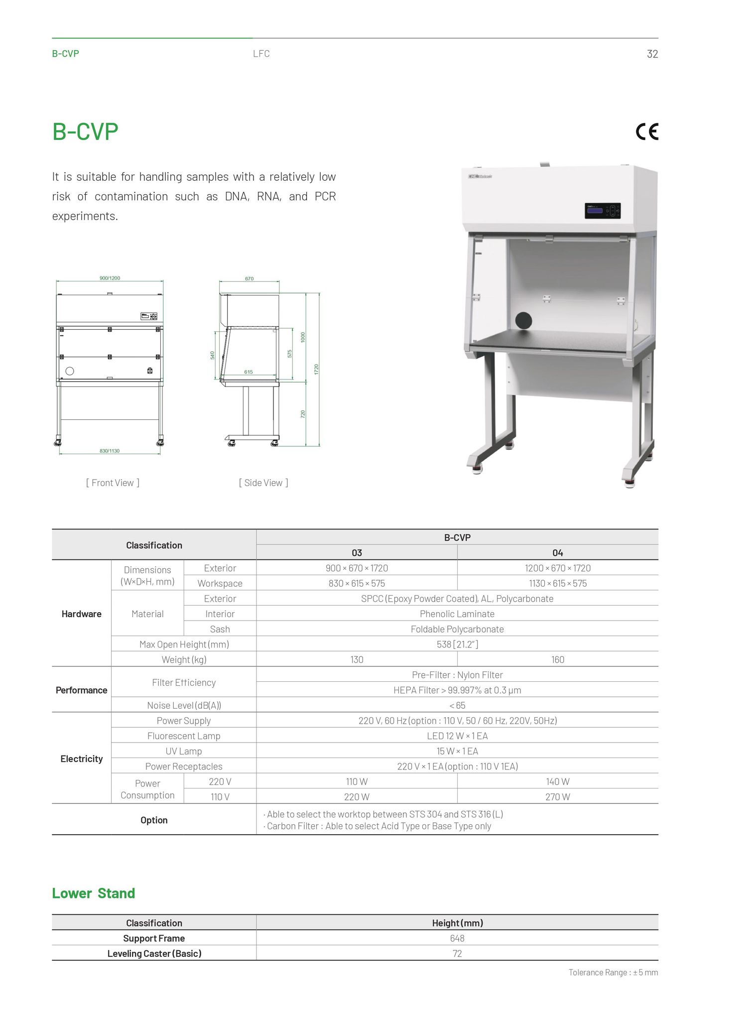 - Power supply: 220 V, 60 Hz (option : 110 V, 50 / 60 Hz, 220V, 50Hz)