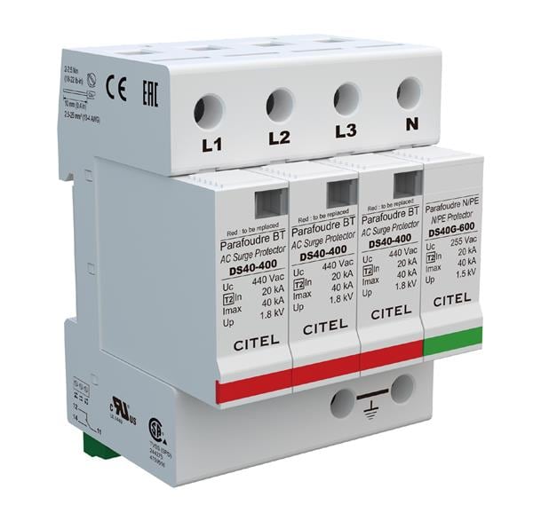CITEL DS44S-400/G DIN Rail AC Power Surge Suppressor Din Rail AC Power Surge Suppressor, 40kA max, 415/240V Split Phase, 3P+GSG | EMIN.COM.MM