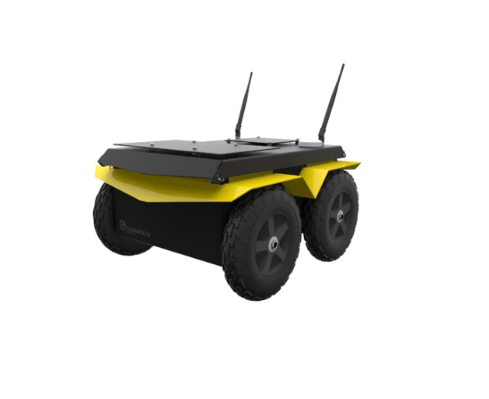 Jackal is built from a sturdy aluminum chassis made with a high torque 4×4 drivetrain for rugged all-terrain operation. It has an IP62 weatherproof casing and is rated to operate from -20 Celsius or +45 Celsius. All connections pass through a compressed-foam cable management port for communicating with external payloads without needing a complex seal.