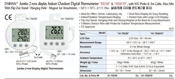 DaiHan A1.T9267D Jumbo 2-row display Indoor/Outdoor Digital Thermometer | EMIN.COM.MM