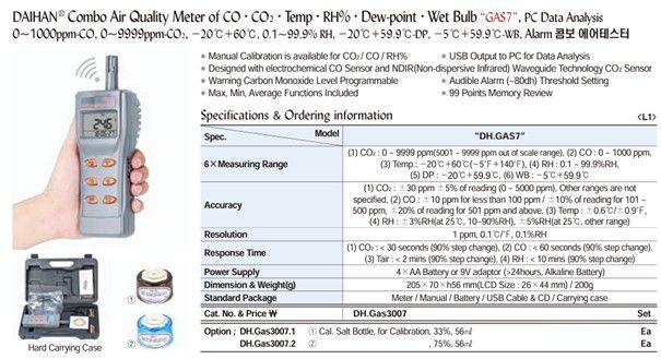 (2) CO : ±10 ppm for less than 100 ppm / ±10% of reading for 101 ~ 500 ppm. ±20% of reading for 501 ppm and above.